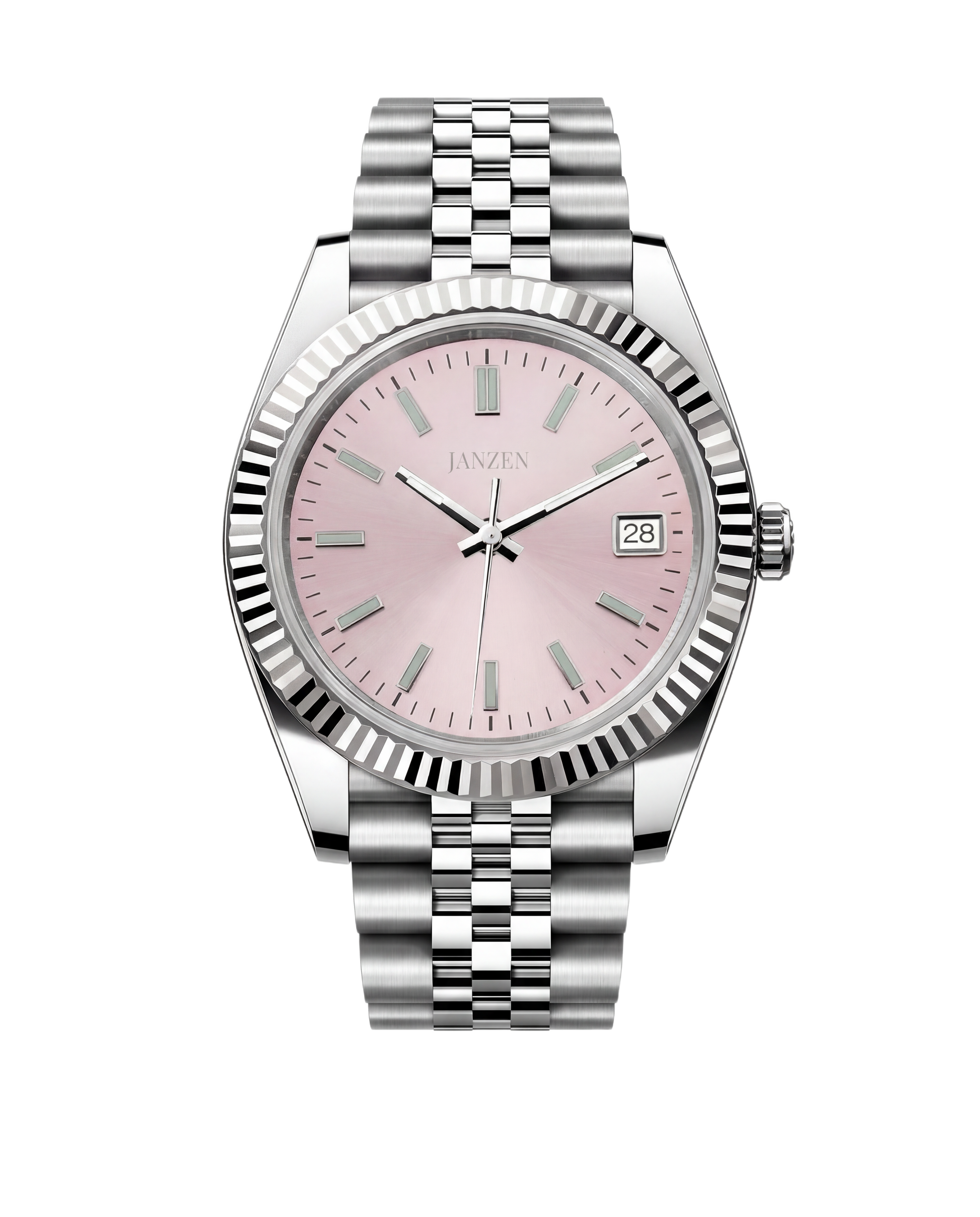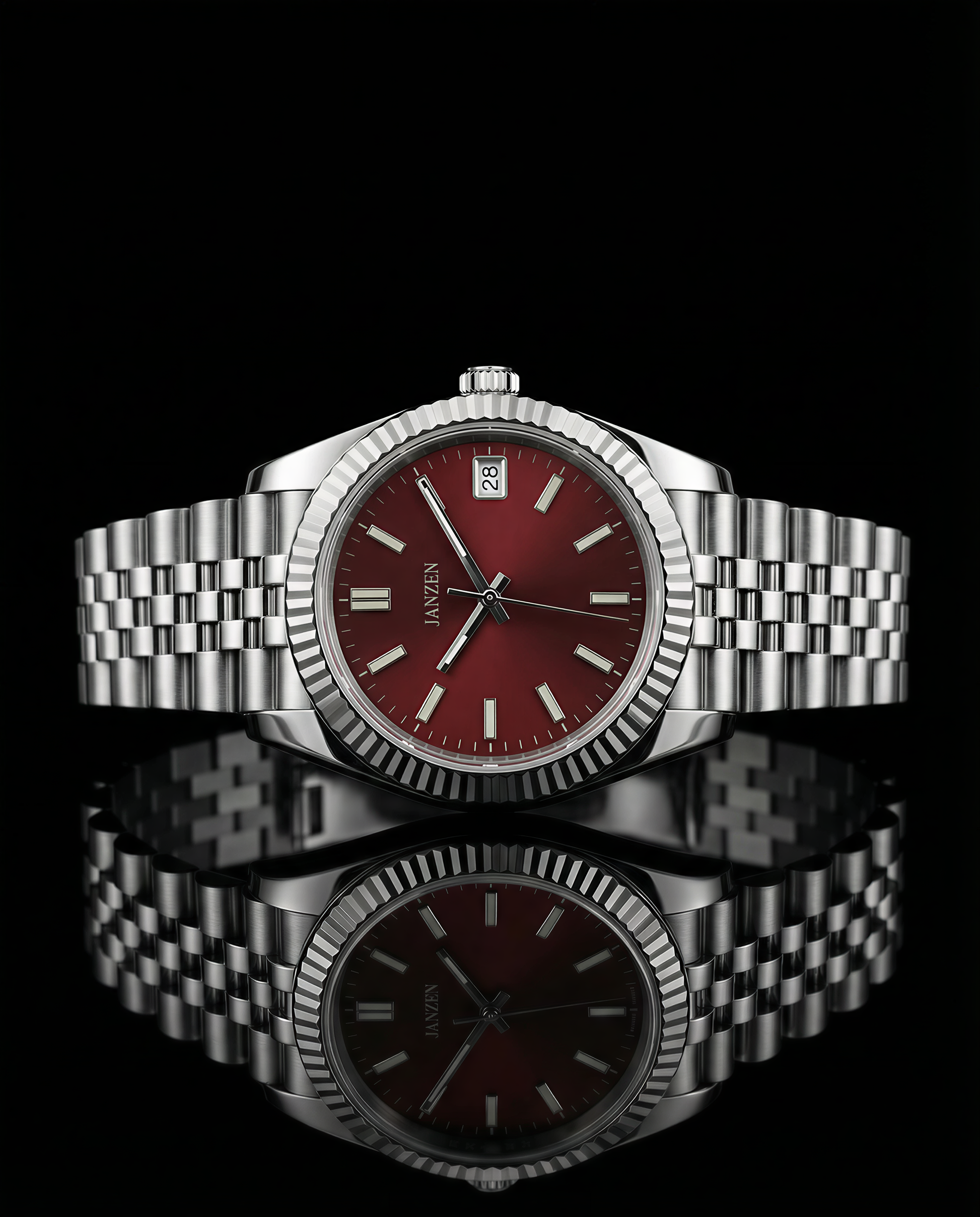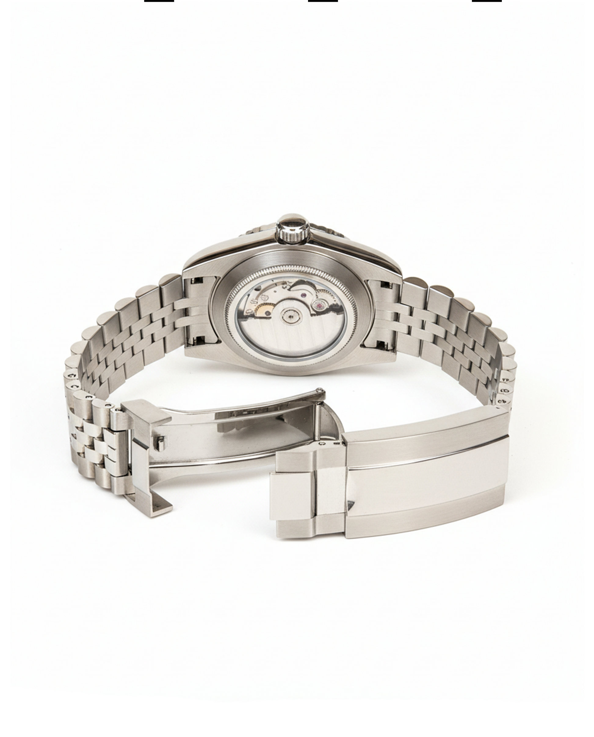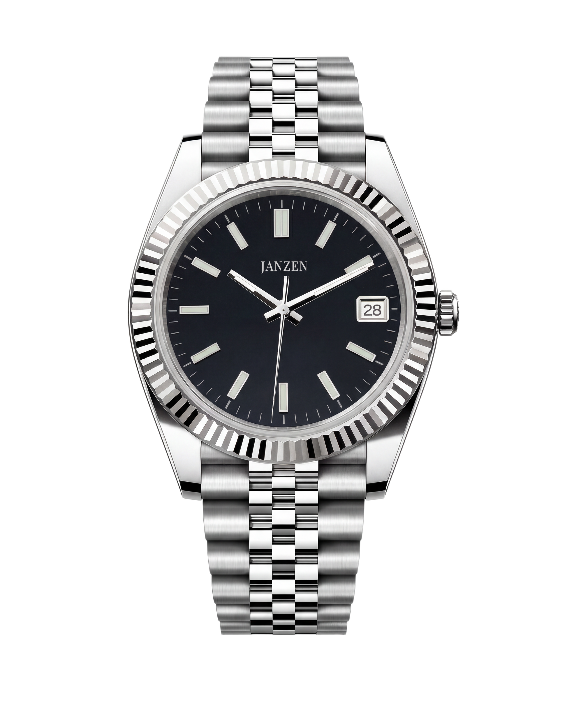 Eine elegante und stilvolle Uhr, die vom klassischen Design der Datejust inspiriert ist, mit einem sportlich, schlichten Zifferblatt und einem Jubilee-Band mit verstellbarer Schließe. Die Datejust ist die perfekte Balance zwischen Luxus, Eleganz und Erschwinglichkeit und damit fast schon ein Muss für Jeden Uhren-Enthusiasten. Hier präsentieren wir sie in der sportlicheren Variante mit nachleuchtenden Strichindizes.