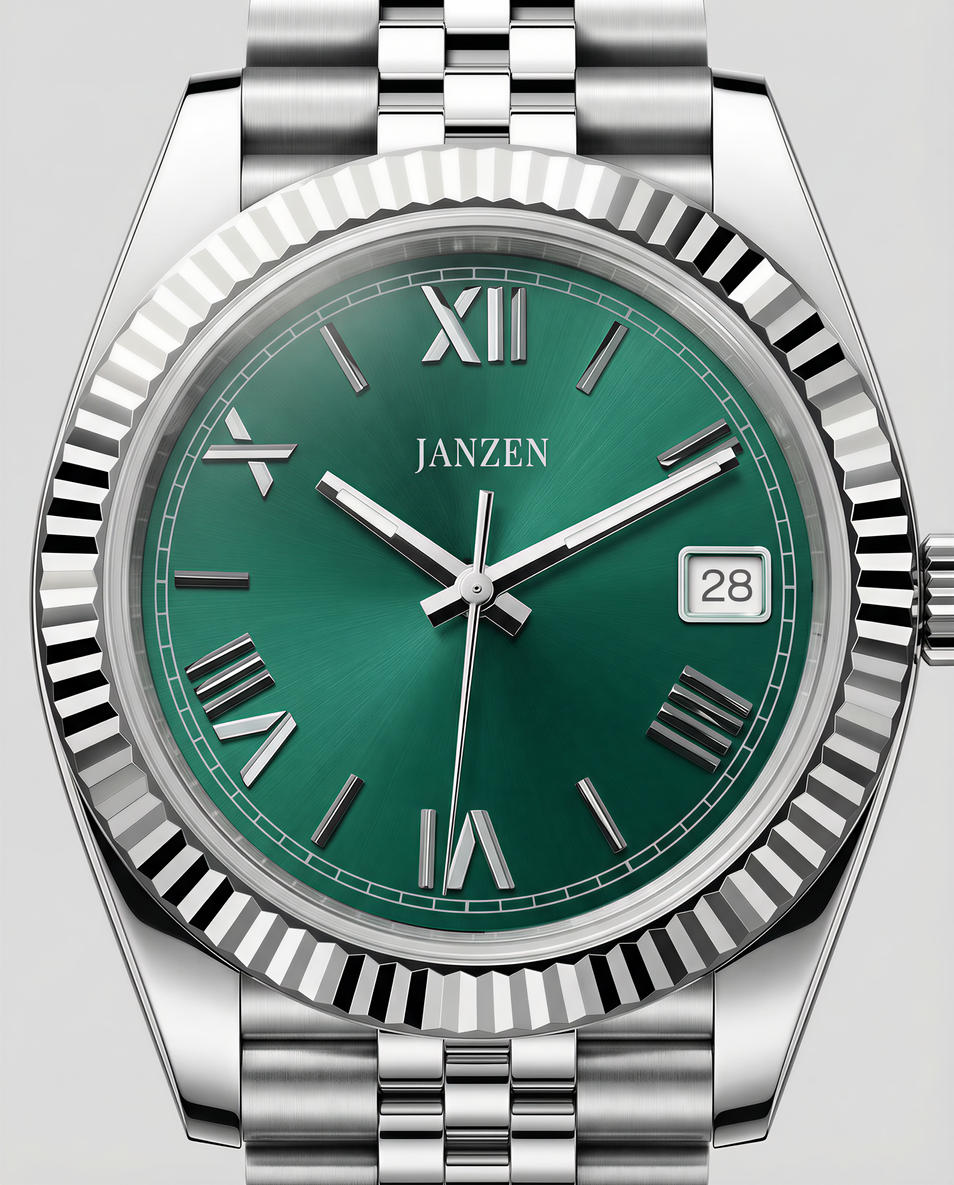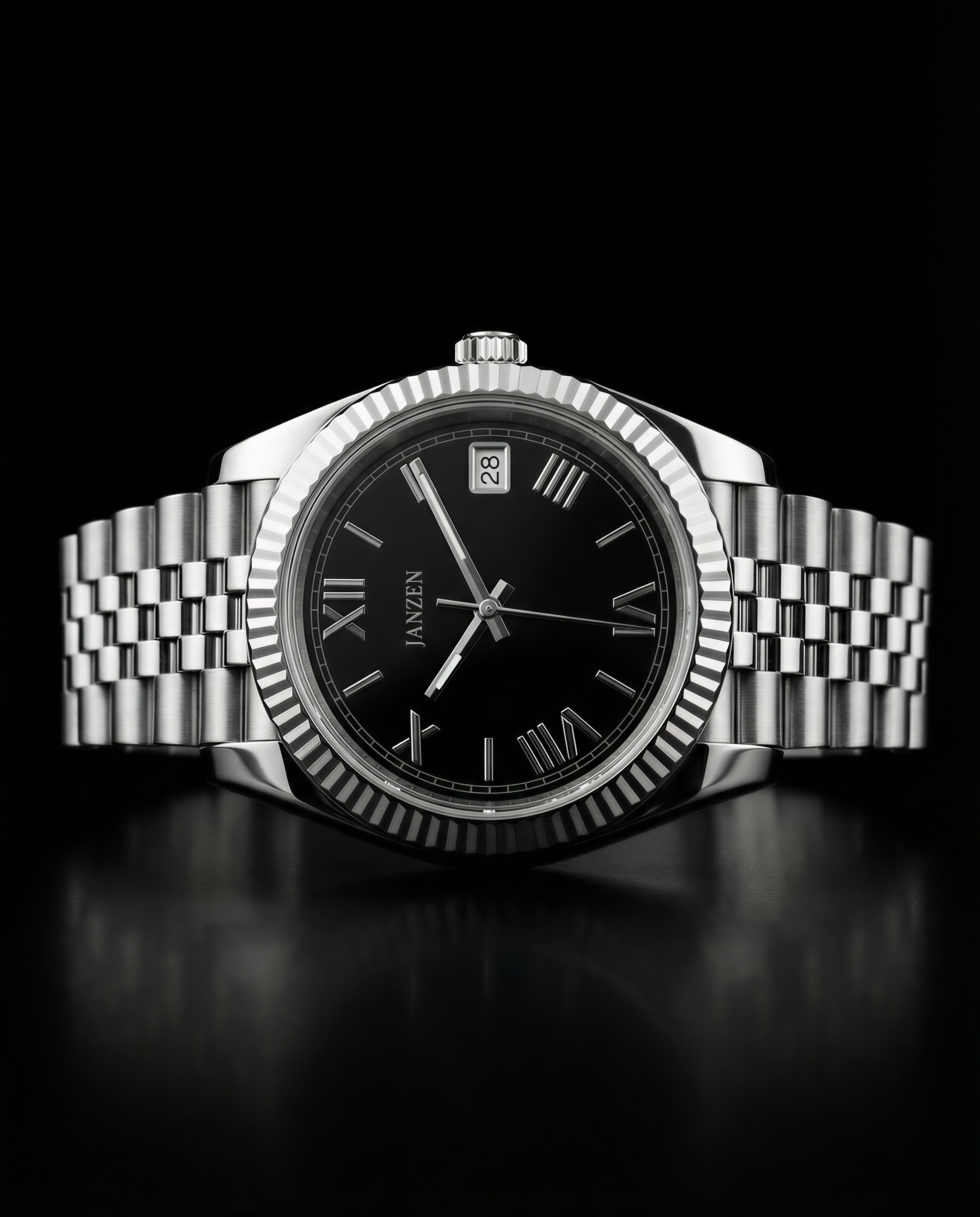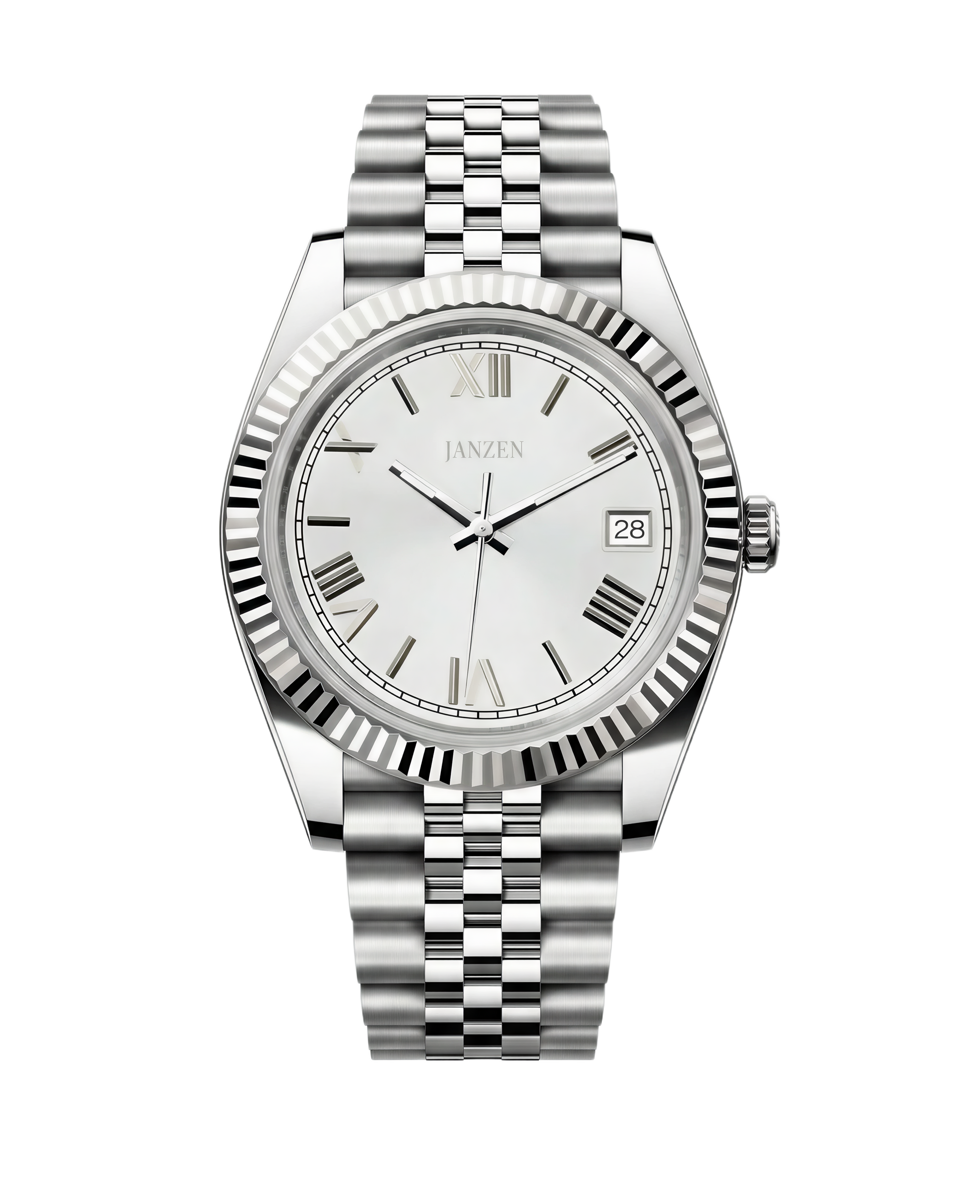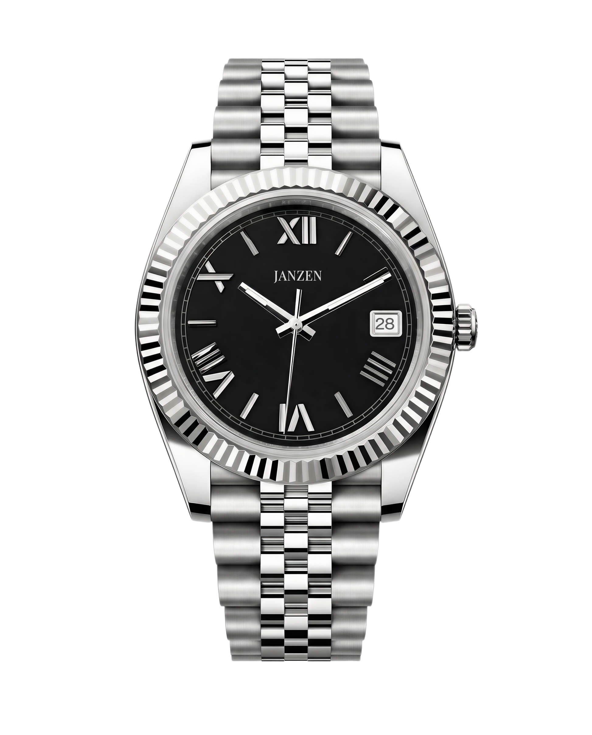 Eine elegante und stilvolle Uhr, die vom klassischen Design der Datejust inspiriert ist, abgerundet mit einem römischen Zifferblatt im Stil einer Daydate und einem Jubilee-Band mit verstellbarer Schließe. Die Datejust ist die perfekte Balance zwischen Luxus, Eleganz und Erschwinglichkeit und damit fast schon ein Muss für jeden Uhren-Enthusiasten. So war sie das erste Modell, dass wir in unsere permanente Kollektion aufgenommen haben.