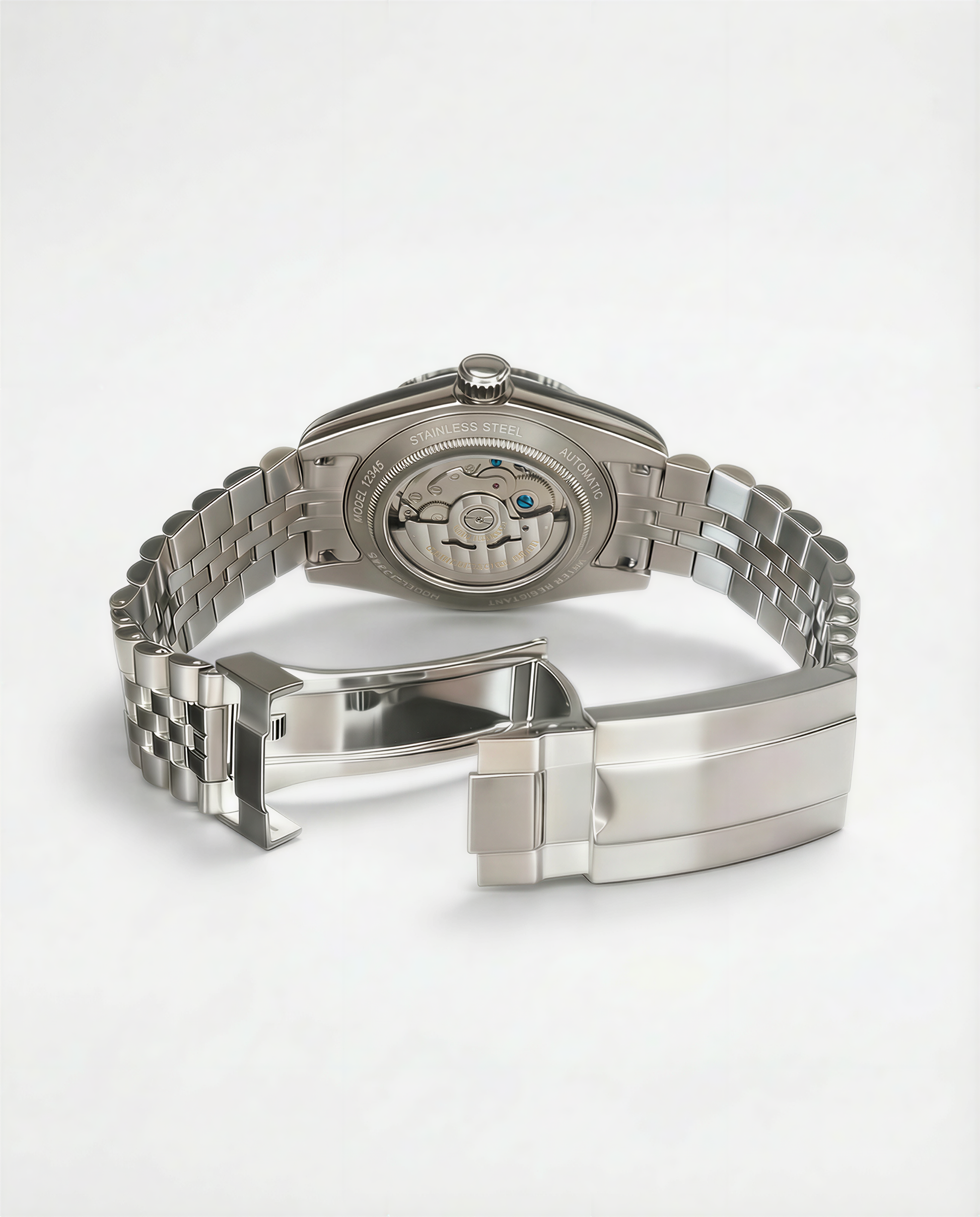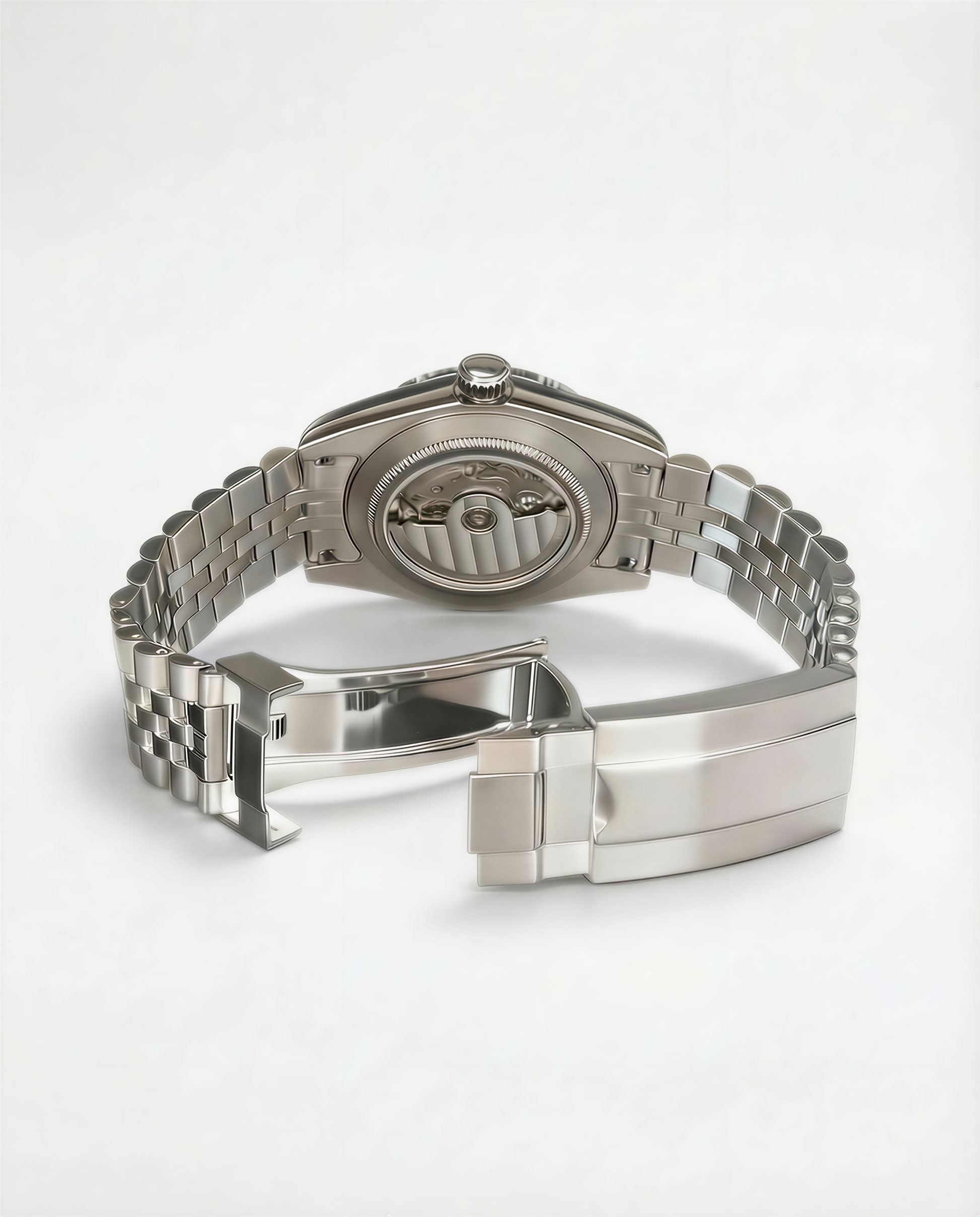 Das Jubilee-Armband bietet durch seine luftdurchlässige und bewegliche Bauweise maximalen Tragekomfort und lässt sich durch die Schnellverstellung in der Schließe besonders Präzise auf ihre Wunschlänge anpassen. Für einen besonders perfekten Look bieten wir die Datejust auch mit dem President-Band mit versteckter Schließe an.
